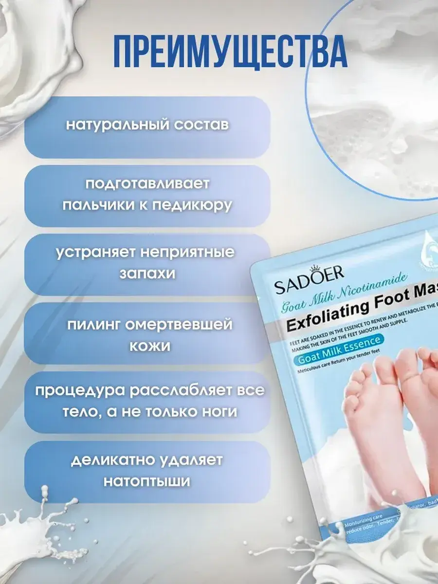 Пилинг маска-носки для ног с молочным экстрактом — это ваш домашний секрет педикюра, который работает лучше любого салона. Нежная молочная формула деликатно отшелушивает ороговевшую кожу, смягчает трещинки и восстанавливает естественную гладкость стоп.